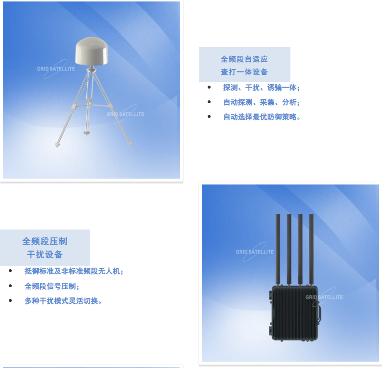 此次展會,格星微發布了3款全頻段產品,以更廣泛的電磁頻譜覆蓋范圍、更智能的架構技術、探測和防御能力的*升級,應對多樣化、隱蔽化的無人機威脅。